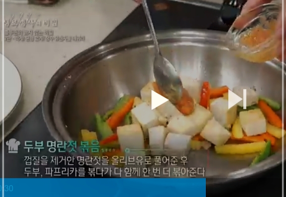 올리브와 참기를을 섞은거는 올리브의 향을 줄이기 위한 거였고,견과류를 더해 식물성 지방을 보충합니다. 해산물은 우리에게 익숙한 찜이나 숙회로 적용할 수 있고요 부침개도 함께 즐길 수 있겠네요.