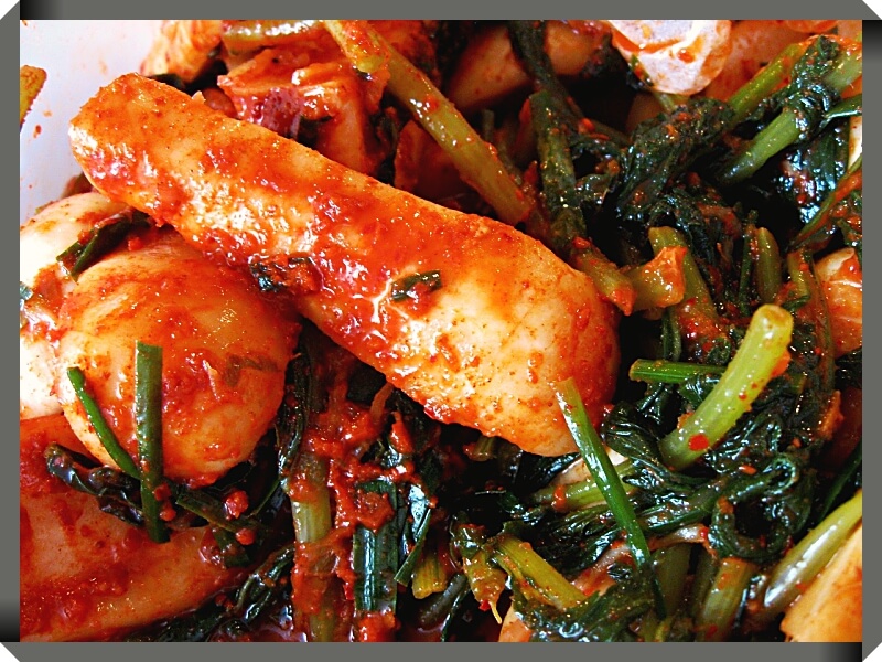 적당한 숙성기간을 거쳐서 맛과 향이 나는 김치를 먹으면 1일 "아스코르브산" 필요량의 80%이상을 섭취하게 되며,김치에 들어가는 마늘의 "알리신"은 비타민 B1 흡수를 향상시키며,알카리를 공급해주고 체액의 균형을 조절해주고,젓갈과 해산물등은 양질의 아미노산을 공급해준다고 합니다.김치의 숙성기간에 따라 발생하는 유기산,알콜 에스테르 등은 식욕과 감칠맛을 불러일으켜 줍니다.