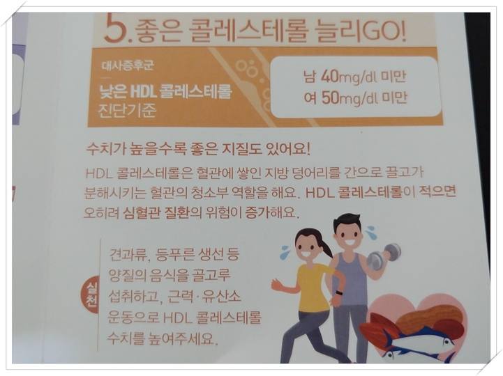 HDL수치를 높히는 방법은 견과류와 등푸른 생선등의 양질의 음식을 골고루 섭취하고 근력,유산소 운동을 규칙적으로 해서 수치를 올려줘야 한다고 하네요.