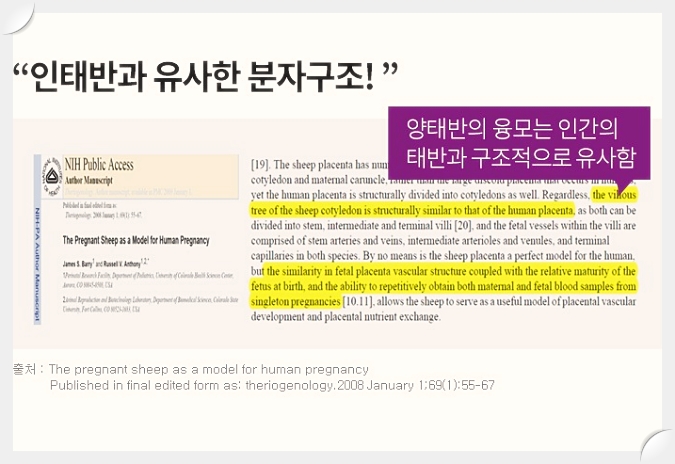 그런데 동물중에서 사람과 어느정도 유사한 생물이 있는데,양입니다. 양태반은 인체와 분자구조가 어느정도 유사해서 사람이 먹었을때 흡수가 빠른 컨디션을 가지고 있습니다.