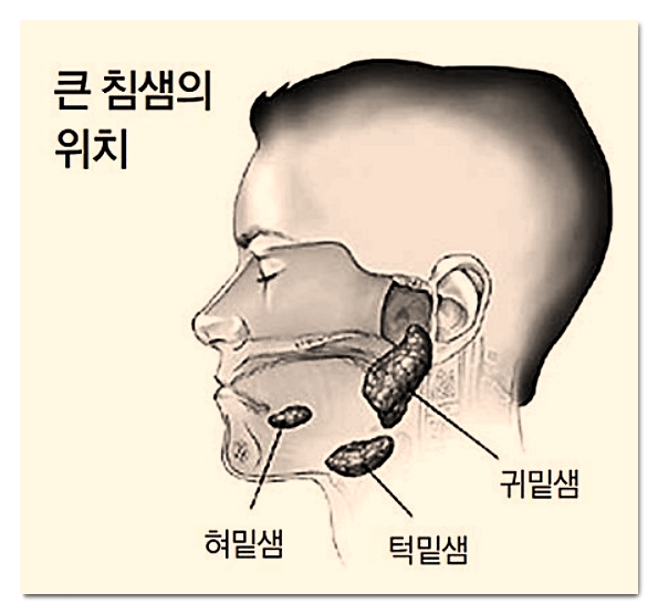 침을 분비하는 귀 밑의 이하선, 턱 아래의 악하선, 혀 아래의 설하선 그외의 우리 입 속에는 수많은 침샘들이 자리잡고 있는데요. 침샘에 염증이 생기면 침샘 부음 증상이 나타날수가 있는데, 침샘 염증은 주로 침샘이 바이러스나 세균에 의해 감염이 이루어져서 "이하선"과 "악하선"에 주로 발생을 합니다.